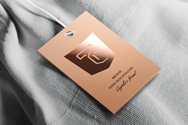 • Labels & Tags: Kraft, minimalist hang tags with embossed logo